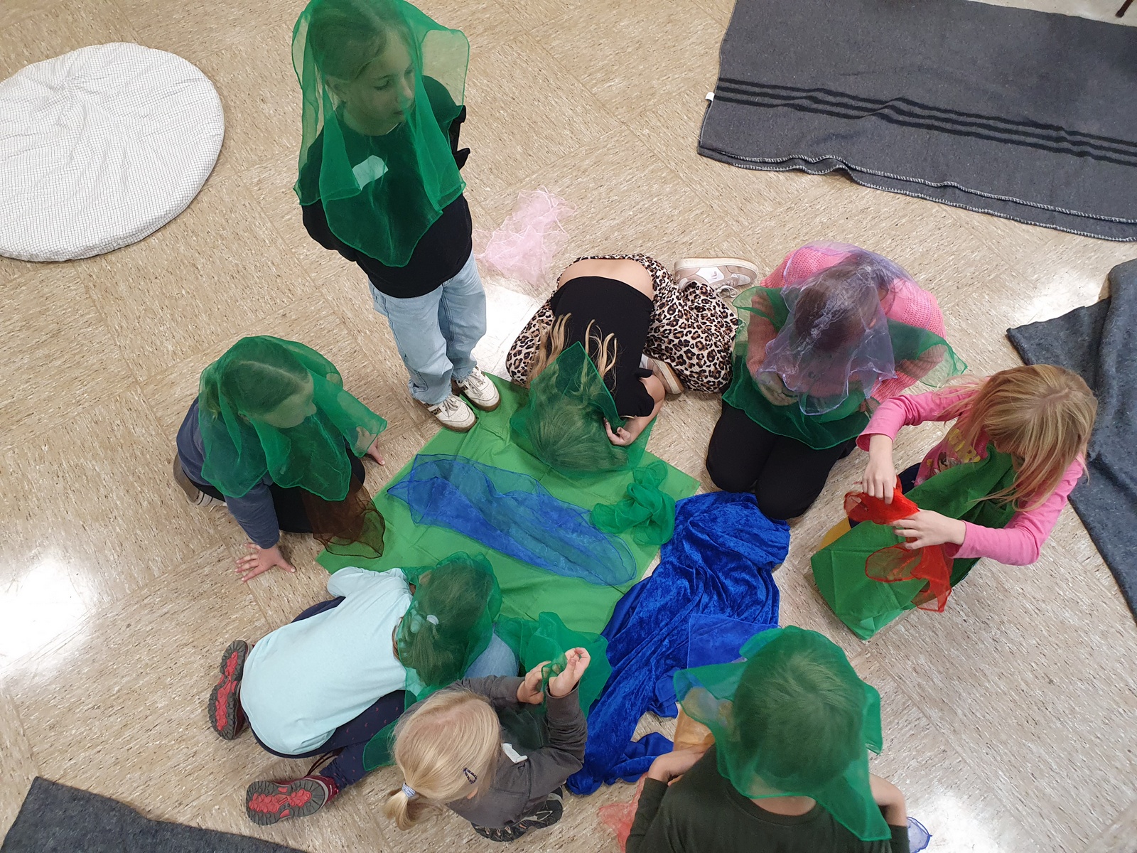 In verschiedenen Workshops konnten die Kinder mit allen Sinnen erfahren, was es bedeutet, dass Gott uns die Welt geschenkt hat: Sie bastelten bunte Türschilder, spielten Impro-Theater, tobten in der Turnhalle, kochten Früchte ein, ließen eine riesige Erdkugel über das Schwungtuch rollen, gestalteten Kratzbilder, matschten mit Lehm oder lauschten Geschichten in der Chill-Ecke.