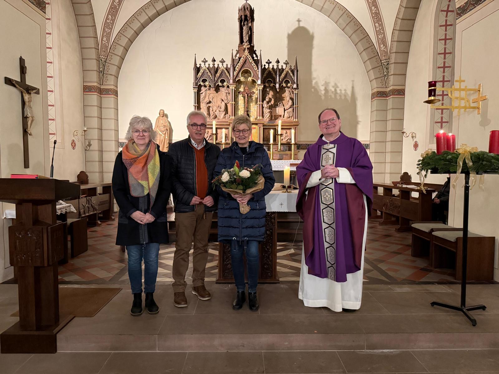 In der Vorabendmesse in Löwen wurde am Samstag, 6.12. die langjährige Organistin Monika Wintermeyer für 25 Jahre geehrt! Vertreter des Kirchenvorstandes und Pastor Jürgen Drücker überbrachten den Dank der Pfarrgemeinde Löwen! Zum Schluss der Hl. Messe wurde  Monika Wintermeyer mit einem schönen Blumenstrauß, einigen Dankesworten und Applaus überrascht.