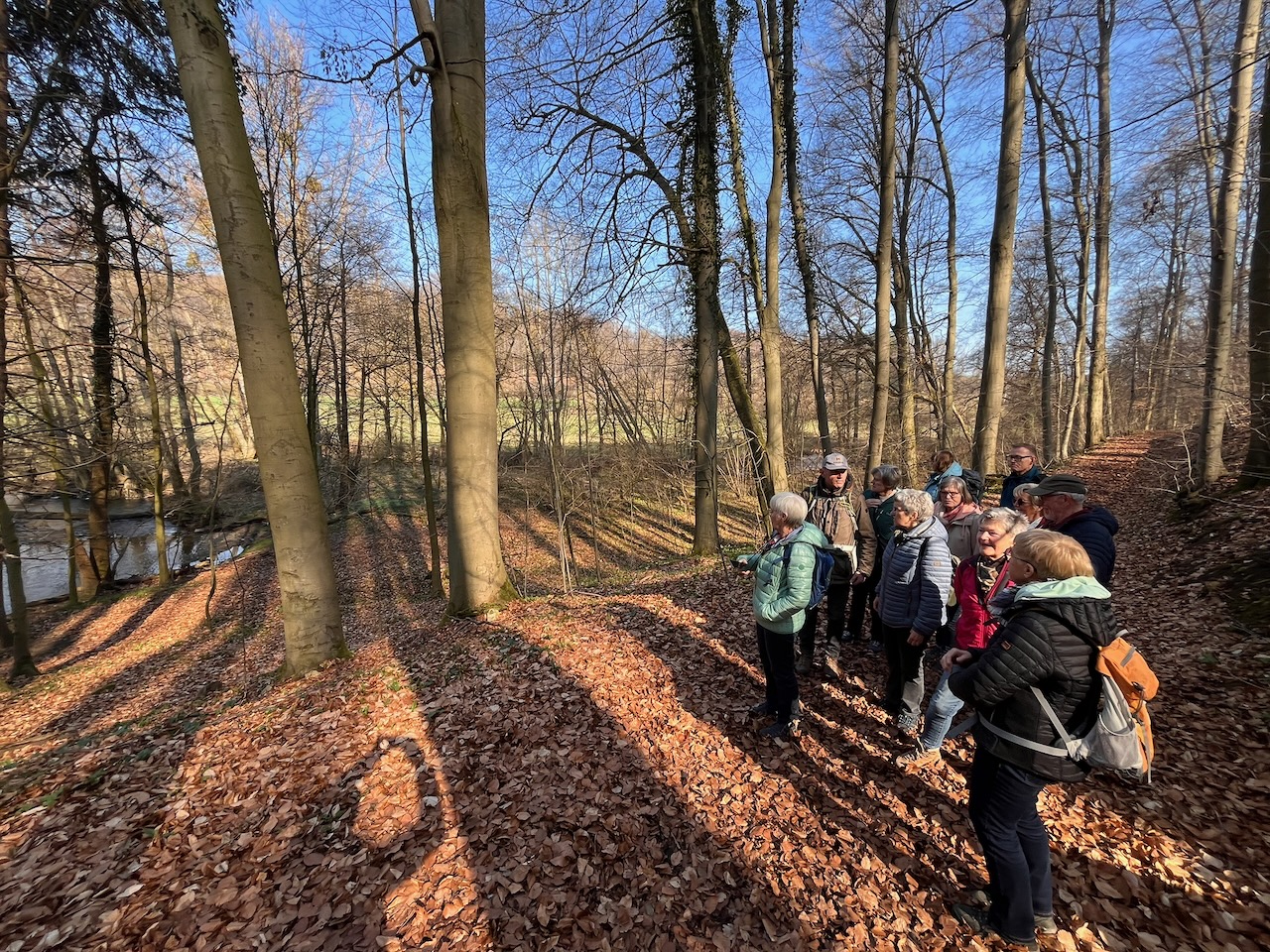 Ein herrlicher Waldweg führt vom Schloss immer an der Nethe entlang in Richtung Fölsen. Die Teilnehmer genossen den Sonnenschein und die herrliche Natur.