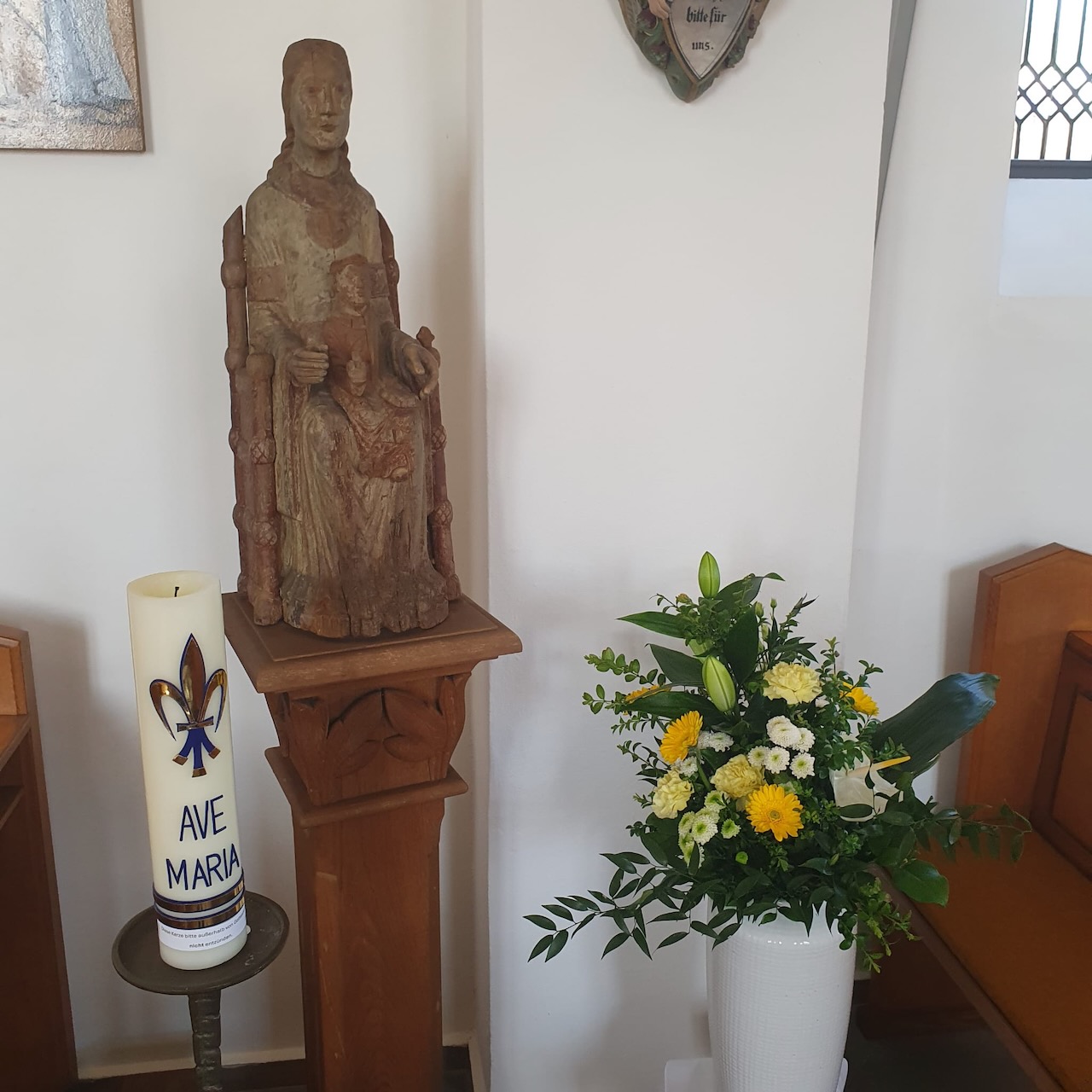 Dort angekommen, wurde die Pilgergruppe bereits von Sandra Gockeln erwartet, die allerlei Interessantes zur St. Kilian – Kirche zu berichten wusste. Besonders erwähnenswert ist die Mariendarstellung aus dem 12. Jahrhundert. Es handelt sich allerdings um eine Nachbildung, denn das Original steht steht seit den 1930er Jahren im Diözesanmuseum in Paderborn.