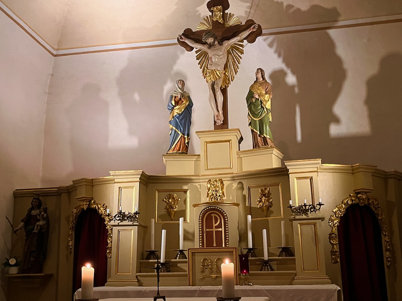 Nach einer kurzen Verschnaufpause wurde dann der Kreuzweg gebetet, der dieses Mal aus Sicht der Gottesmutter Maria gestaltet war. Die 14 Stationen waren stimmungsvoll durch Kerzen erleuchtet. Nach einem kurzen Gebet in der Kapelle und zwei Liedern traten die Männer den Rückweg an.