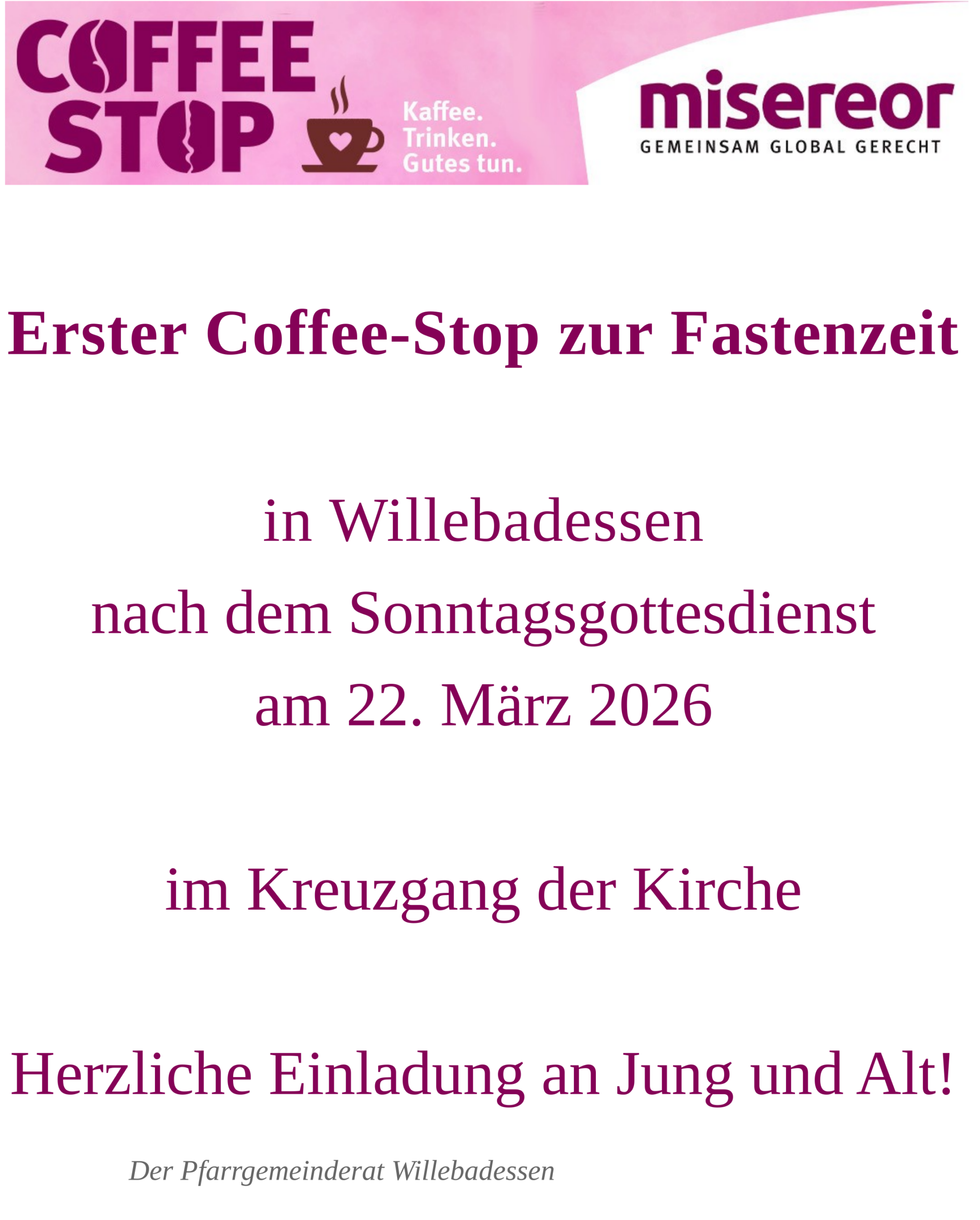 Der Gemeinderat Willebadessen veranstaltet am 22. März den 1. Coffee-Stop nach dem Sonntagsgottesdienst.