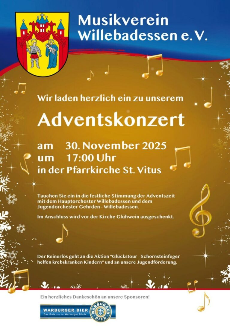 Der Musikverein Willebadessen lädt herzlich zum traditionellen Adventskonzert ein. Das Konzert vom Jugend- [...]