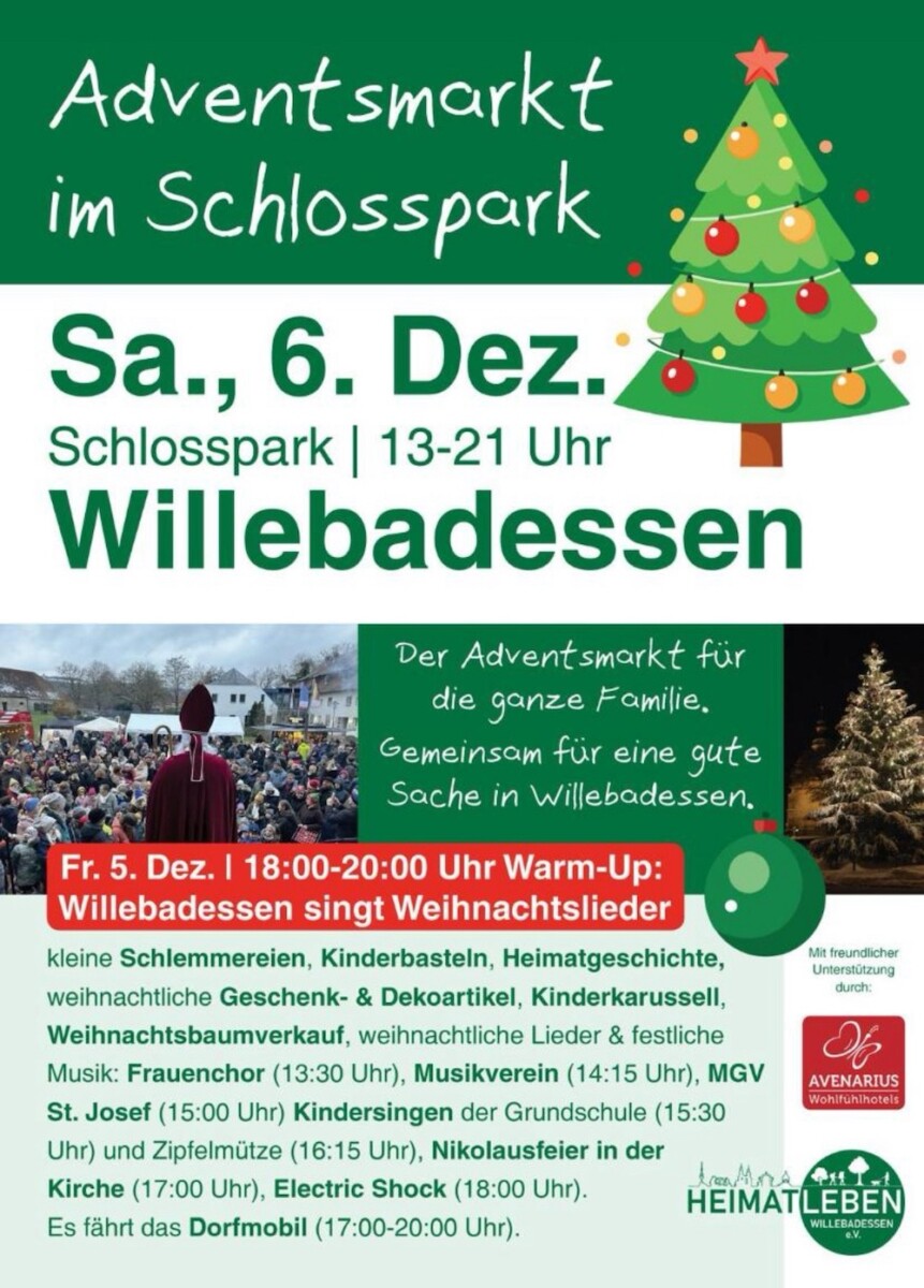 Herzliche Einladung zum Besuch des Adventsmarktes im Schlosspark in Willebadessen Samstag, 6. Dez. [...]