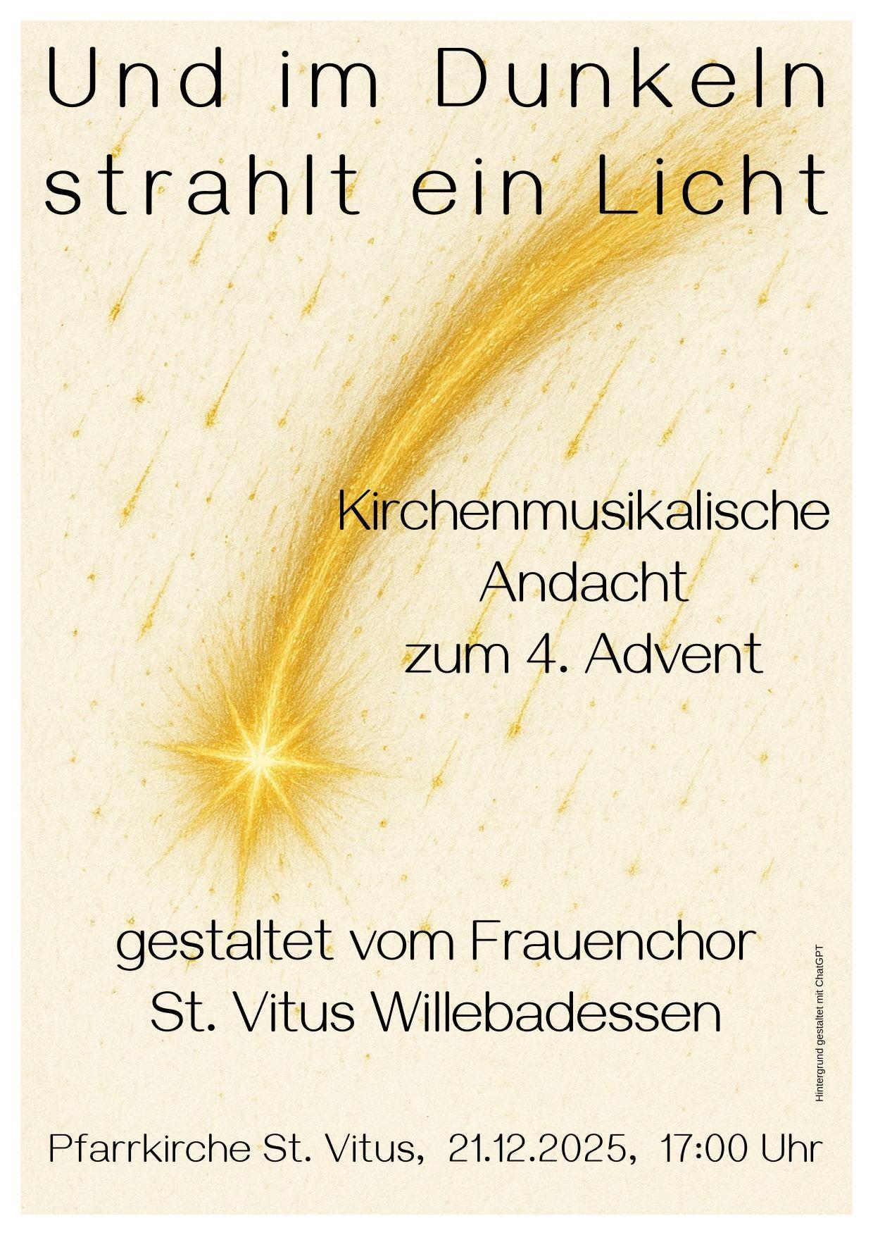 Zu diesem Thema gestaltet der Frauenchor St. Vitus seine, zur Tradition gewordene, Andacht am 4. Adventssonntag, in diesem Jahr am 21. Dezember, um 17 Uhr in der Pfarrkirche zu Willebadessen. Herzliche Einladung.