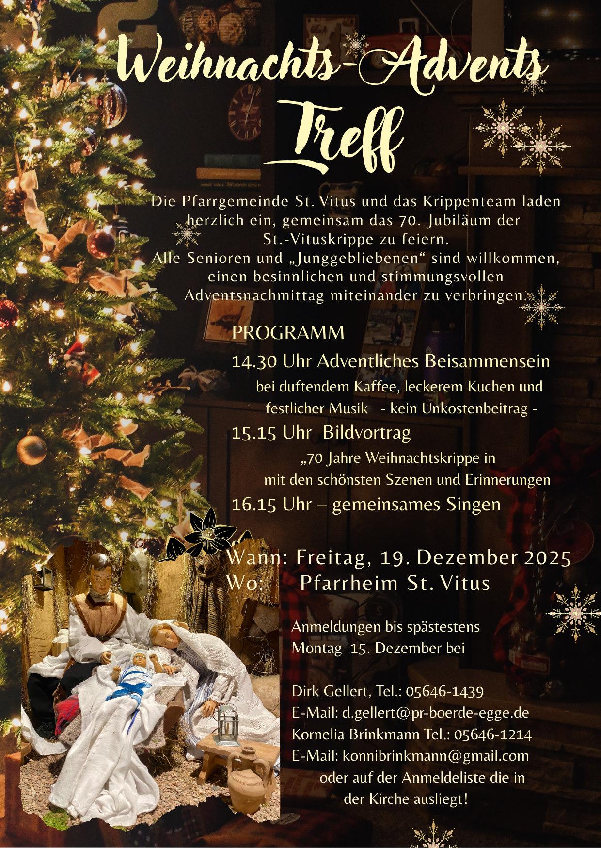 Die Pfarrgemeinde St. Vitus Willebadessen und das Krippenteam laden herzlich ein, gemeinsam das 70. Jubiläum der St.-Vitus-Krippe zu feiern.