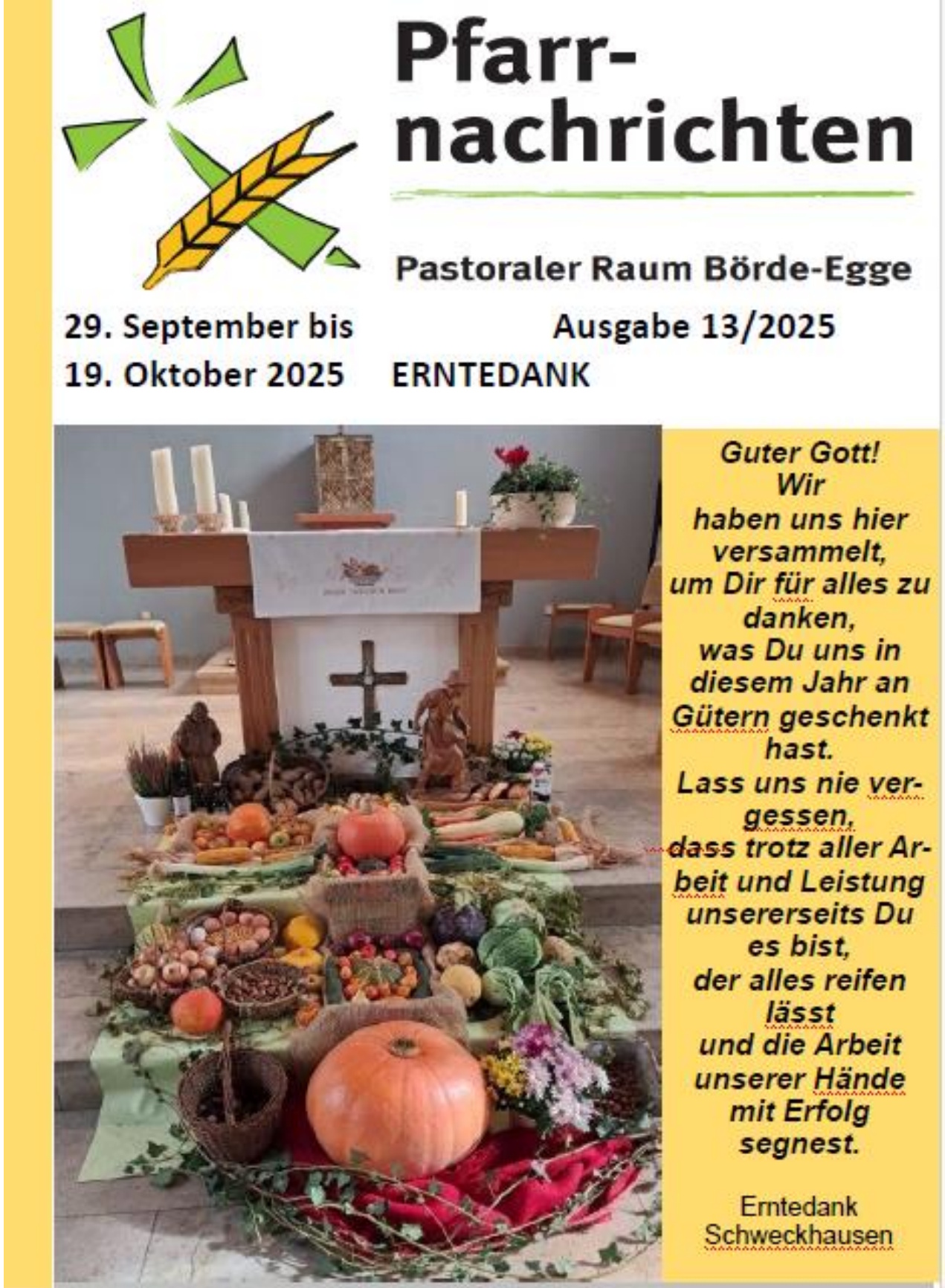 Redaktionsschluss für die nächste Ausgabe der Pfarrnachrichten: Mittwoch, 8. Oktober 2025 | 17 Uhr.