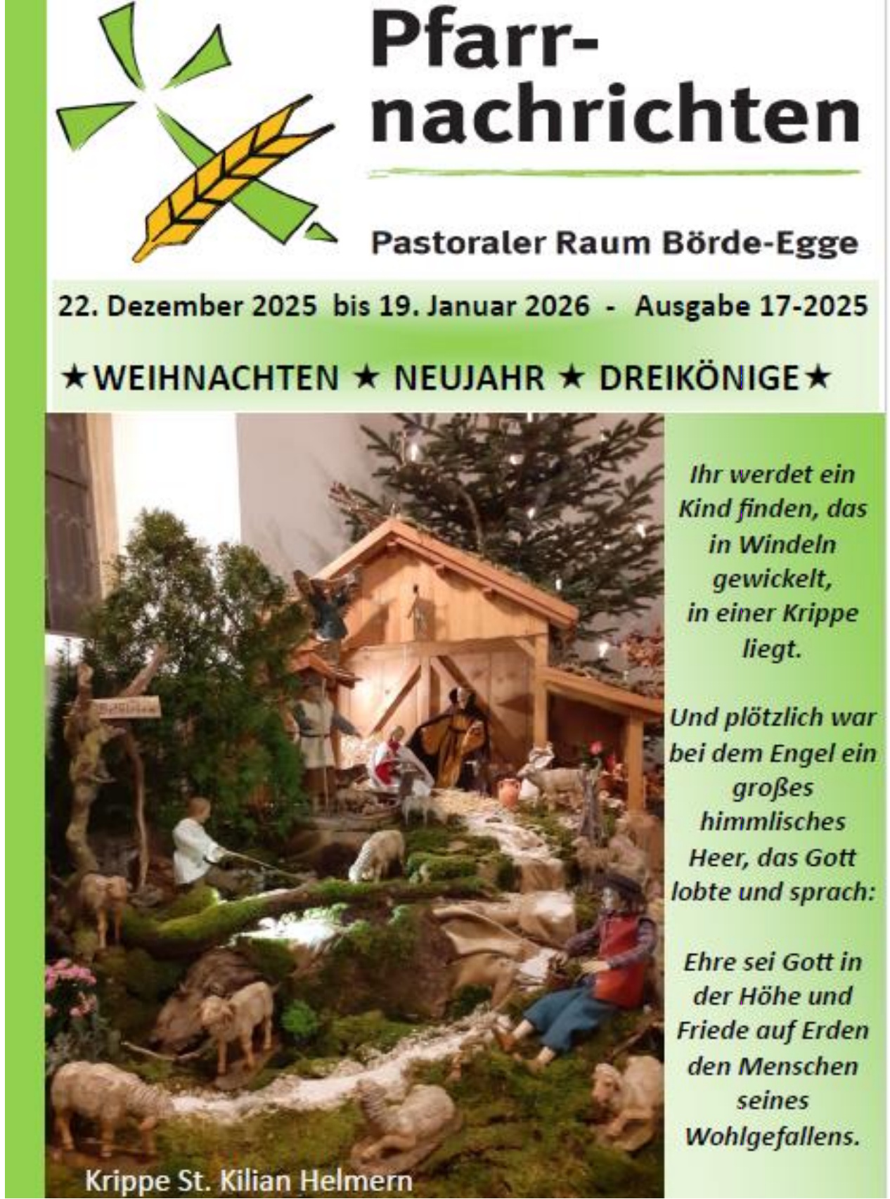 Das Pfarrteam in Altenheerse lädt ein zur Krippenfeier am Heiligen Abend Pfarrkirche Altenheerse, [...]