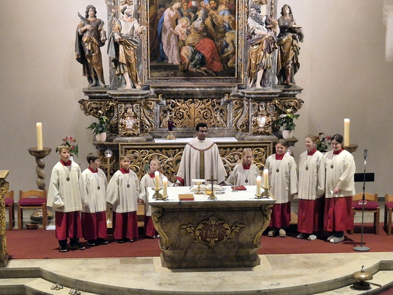 Während der Vorabendmesse in Natzungen - zum Weihetag der Lateranbasilika in Rom - konnte Pastor John Paul vier neue Messdiener in ihr Amt am Altar einführen. Es sind die Kommunionkinder dieses Jahres; Leonie D., Justus H., Zoe K. und Marleen W. Ihnen wurden in einer feierlichen Zeremonie das weiße Gewand, sowie die Messdienerplakette überreicht. [...]